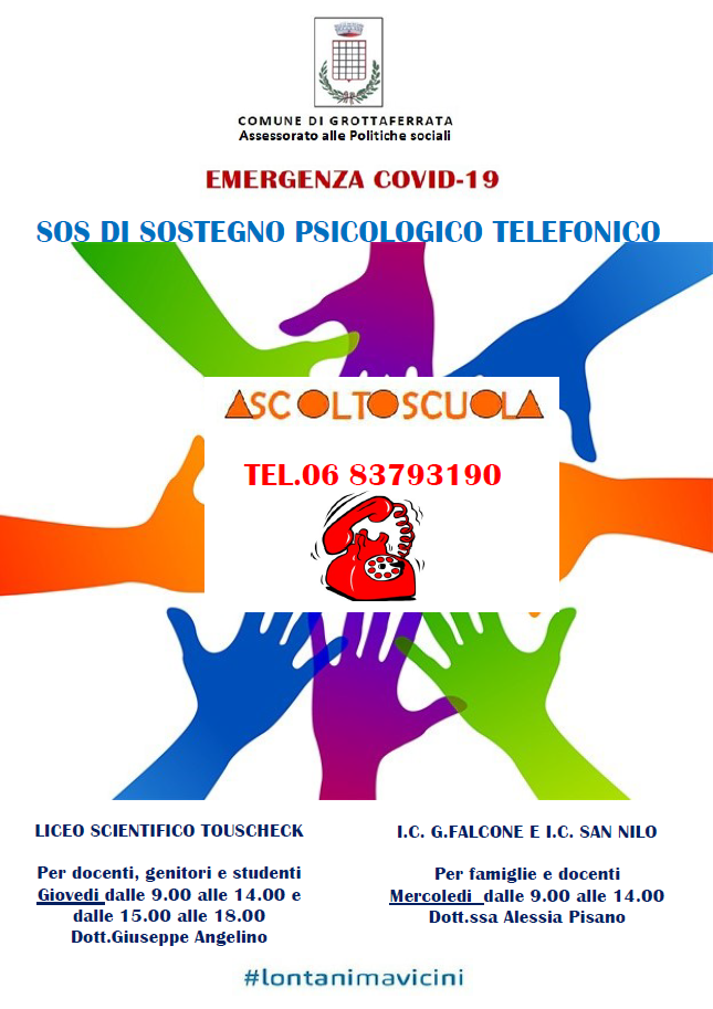 “SOS PSICOLOGICO, IL SERVIZIO CRESCE E SI DIFFERENZIA: IN CAMPO GLI PSICOLOGI SCOLASTICI DI GROTTAFERRATA