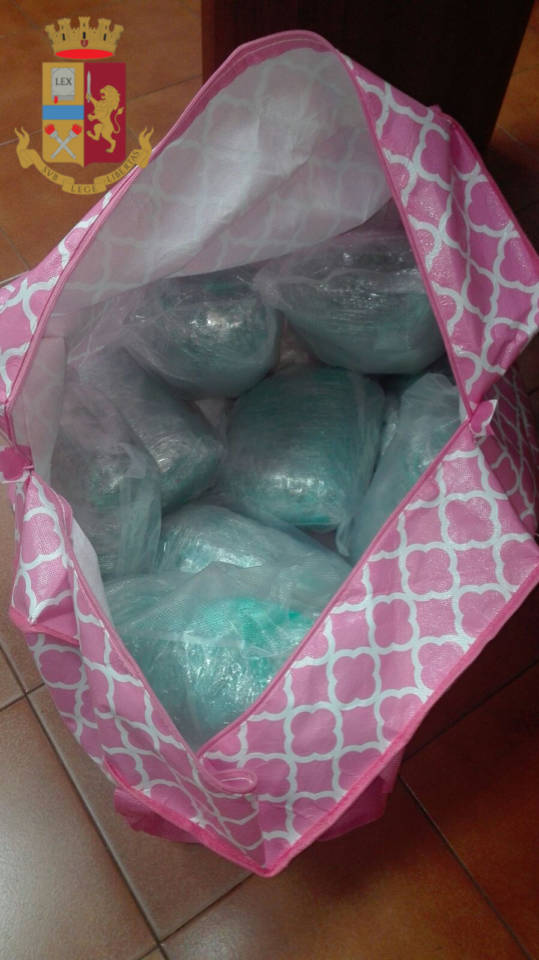 Le indagini condotte dalla Sezione Antidroga della Squadra Mobile traggono la loro origine dall’arresto di un cittadino italiano incensurato, F.S. di anni 37, per detenzione ai fini di spaccio di kg. 9,415 lordi di sostanza stupefacente di tipo marijuana, suddivisa in nr. 9 confezioni del peso di 1 Kg. cadauno, trasportati a bordo dell’autoveicolo condotto e di proprietà dell’uomo.