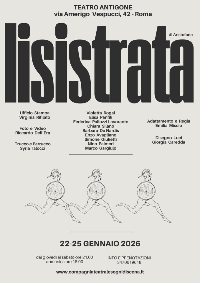 Dal 22 al 25 gennaio 2026, il Teatro Antigone di Roma ospita Lisistrata, una commedia tra le più audaci e visionarie di Aristofane.