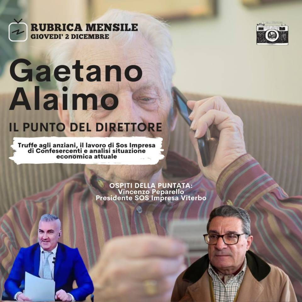 Nella seconda parte della puntata ci sarà la rubrica mensile di Gaetano Alaimo “Il Punto del Direttore” con l’intervista a Vincenzo Peparello, presidente provinciale di Confesercenti, che lavora da anni per combattere le truffe agli anziani ed agli imprenditori con l’aiuto dell’associazione Sos impresa e mediante campagne di comunicazione mirate. Con Peparello parleremo anche dell’attuale situazione economica locale e nazionale.