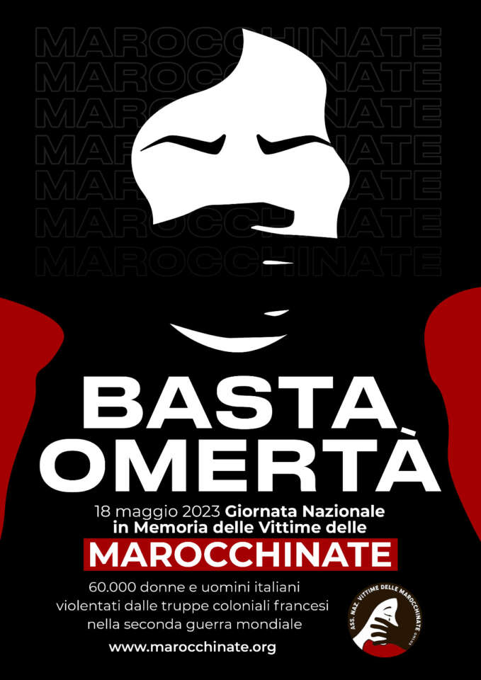 Con lo slogan “Basta omertà”, il 18 maggio 2023 sarà celebrata la terza edizione della Giornata Nazionale in Memoria delle Vittime delle marocchinate. Coinvolte in particolare Sicilia, Campania, Lazio e Toscana. Ciotti (presidente ANVM) “ottanta anni di omertà storica e politica devono finire”.