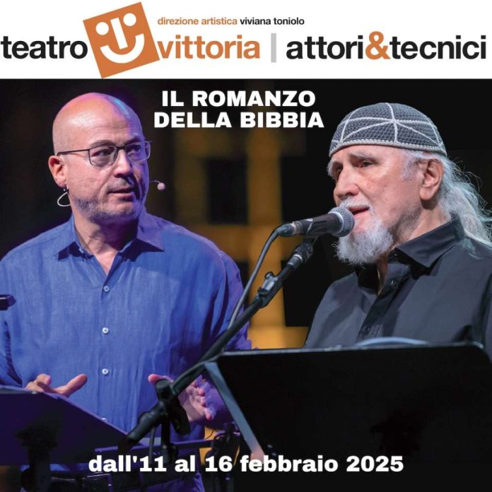 È un’esperienza totalmente immersiva, anche adrenalinica, a tratti persino mistica, quella che restituiscono, sul palco del Teatro Vittoria, nel cuore di Testaccio, Aldo Cazzullo e Moni Ovadia rappresentando la più grande storia di sempre: La Bibbia.