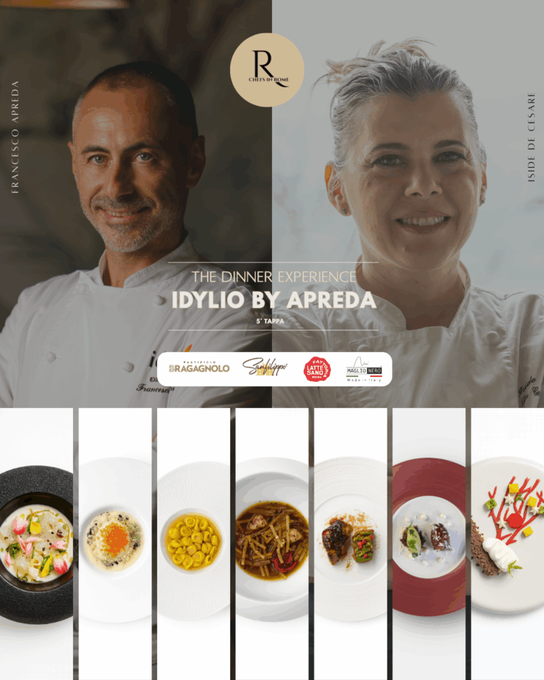 Nella cornice raffinata del ristorante Idylio by Apreda, all’interno del prestigioso The Pantheon Iconic Rome Hotel, si è svolta la quinta tappa della seconda stagione di The Dinner Experience by Chefs in Rome, il format ideato da Cristiano Bucciero e curato dalla Project Manager Dott.ssa Francesca Napolitano.