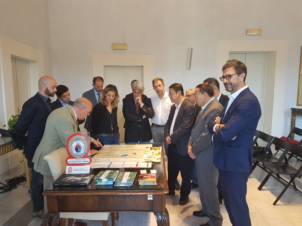 Il sindaco di Frascati Roberto Mastrosanti ha ricevuto una delegazione cinese del Tianjin Food Group, il principale gruppo agroalimentare di Tianjin, la terza città della Cina in termini di abitanti( 17 milioni), che ospita uno dei più importanti porti commerciali del sud est asiatico. E’ il secondo incontro tra le parti dopo la missione frascatana avvenuta nel luglio scorso, promossa da una rete di imprese specializzate nel settore dell’internazionalizzazione (Aden Tianjin, Aden Singapore, HQI, IM e RJJ marketing) . “Si è parlato – spiega Roberto Mastrosanti- non solo del vino di Frascati che rappresenta per noi un biglietto di visita importante, ma anche e soprattutto del territorio dei Castelli Romani, ricco di storia, cultura e tradizioni enogastronomiche. E’ nostra intenzione creare una serie di scambi culturali e produttivi con la Comunità di Tianjn, che è rimasta piacevolmente colpita dalla qualità dei nostri prodotti e dalla bellezza della nostra area. Ringrazio per questo il Consorzio per il Sistema Bibliotecario dei Castelli Romani, oggi rappresentato dall’architetto Giovanni Biallo e dalla dottoressa Valentina Sollecito, che si è reso disponibile a redigere un progetto condiviso”. La delegazione cinese, dopo i saluti istituzionali a Palazzo Marconi , si è recata in visita a Villa Falconieri, ospite del Professor Luigi Miraglia, prima di terminare il soggiorno tuscolano all’interno dell’Azienda Merumalia dell’Ingegner Luigi Fusco che ha allestito per l’occasione, in collaborazione con il Consorzio Tutela Denominazioni Vino Frascati e la Strada del Vino dei Castelli Romani, una degustazione di vini locali abbinati alla Porchetta di Ariccia, gentilmente offerta dall’Amministrazione Comunale di Ariccia rappresentata dal Consigliere delegato al Turismo Giorgio Leopardi. All’iniziativa hanno preso parte, tra gli altri: Basilio Ventura, delegato alle Politiche Agricole del Comune di Frascati, Michele Russo, consigliere del Consorzio Tutela Denominazioni Vini Frascati e Roberto Rotelli, presidente della Strada dei Vini dei Castelli Romani.