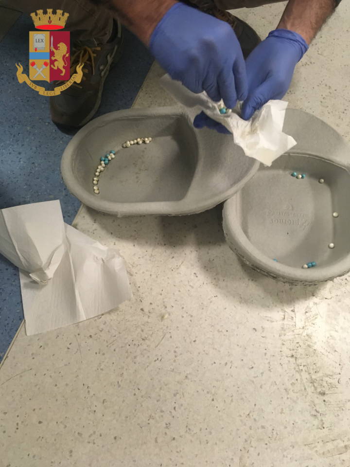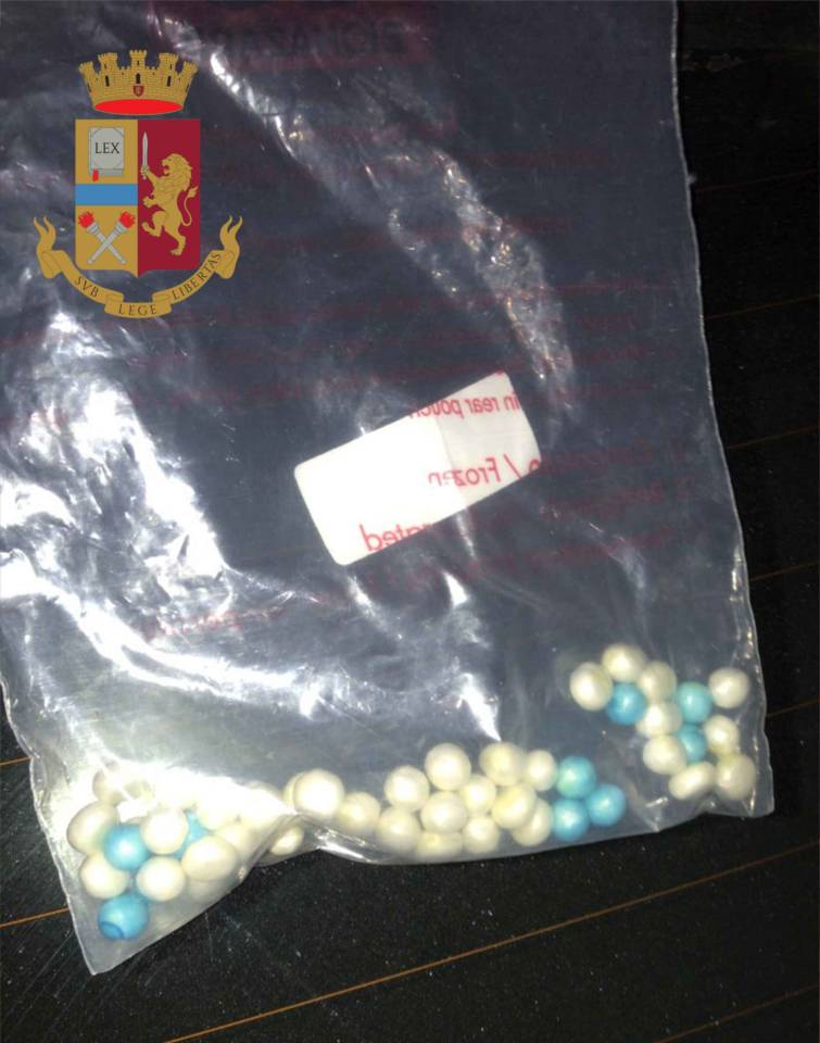 Fermato dagli agenti, M.S. ha cercato di divincolarsi sferrando calci e pugni, ma è stato bloccato e portato in ospedale dove, in seguito ad accertamenti, è risultato aver ingerito 55 involucri.