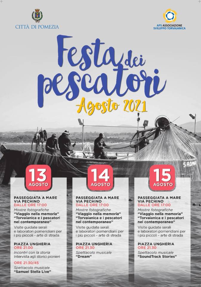 Ricco il programma della tre giorni di festa, alla scoperta delle tradizioni locali e marinaresche. Dalle ore 17.00 sarà possibile visitare le mostre fotografiche “Viaggio nella memoria” e “Torvaianica e i Pescatori nel contemporaneo”, lungo la passeggiata a mare di via Pechino. Previste inoltre visite guidate serali, spettacoli di artisti di strada e laboratori pomeridiani per i più piccoli. Venerdì 13 la serata sarà arricchita da momenti di memoria storica grazie ai racconti degli storici pionieri di Torvaianica. Previsti ogni sera alle 21.30 spettacoli musicali: venerdì “Samuel Stella Live”, sabato “Dream” e domenica “SoundTrack Stories”.