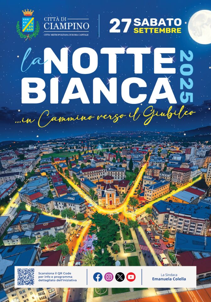 Sabato 27 settembre è Notte Bianca a Ciampino. Per l’occasione, il centro cittadino si trasforma in un palcoscenico a cielo aperto, dove arte, musica, cultura e comunità si fondono in un’atmosfera magica. Una serata pensata per celebrare l’identità e l’energia della comunità locale.