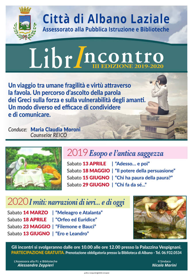“Sabato 13 aprile 2019 presso la Palazzina Vespignani (viale Risorgimento, 1 – Albano Laziale) dalle ore 10:00 alle ore 12:00 si terrà il primo incontro della terza edizione del progetto LibrIncontro che sarà incentrato sul tema Esodo e l’antica saggezza