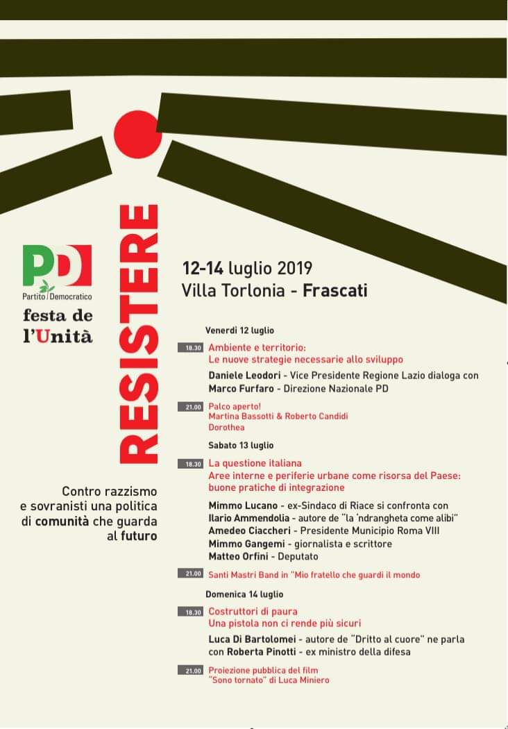 Chiaramente saranno presenti gli stand gastronomici dove poter cenare insieme come nelle più classiche Feste de L’Unità. Contro chi costruisce paura, vogliamo trasmettere comunità e vi aspettiamo nel sempre splendido scenario di Villa Torlonia per queste belle giornate insieme”. Così in una nota il Circolo del Partito Democratico di Frascati