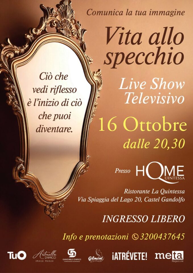 Dopo la pausa estiva torna “Vita allo Specchio”: il live show televisivo ideato e promosso da Giancarlo e Antonella D’Amico, in collaborazione con l’Accademia Gilmont, in cui attraverso un’esperienza spettacolare ogni partecipante potrà scoprire come comunicare al meglio la propria immagine, migliorare il suo impatto relazionale con gli altri e con l’ambiente, nel lavoro come nella vita di tutti i giorni.