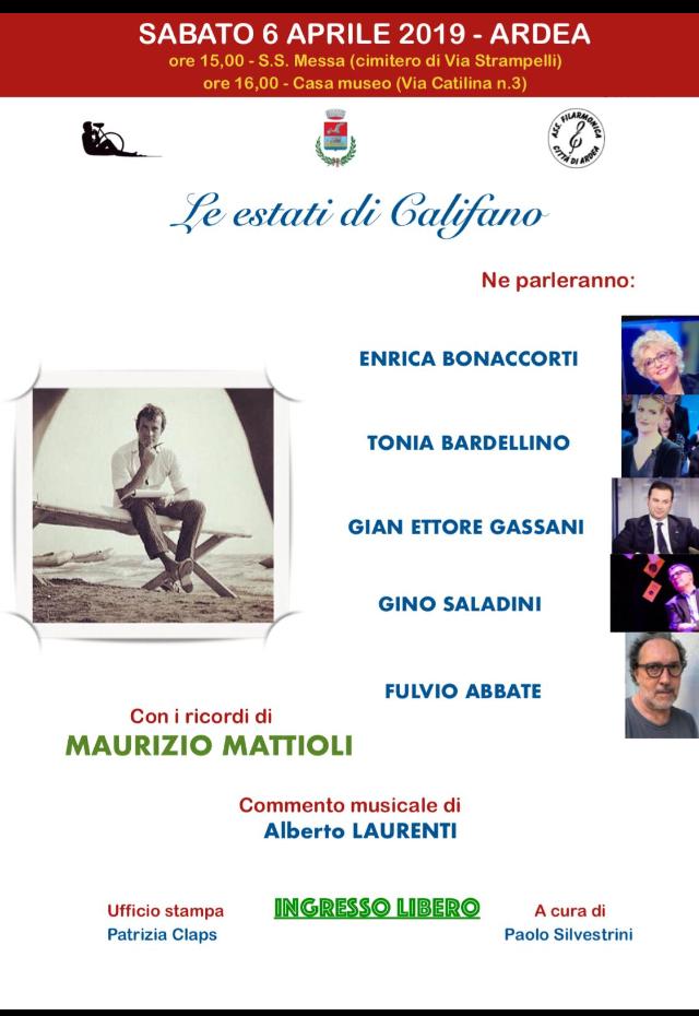 La giornata commemorativa prenderà il via con la celebrazione della SS. Messa presso il cimitero del Comune, e proseguirà poi con l’esibizione della Filarmonica di Ardea Il ricordo di Califano reso in musica dai commenti di Alberto Laurenti, musicista e autore, condurranno il pubblico in un viaggio emozionante nella bella canzone.