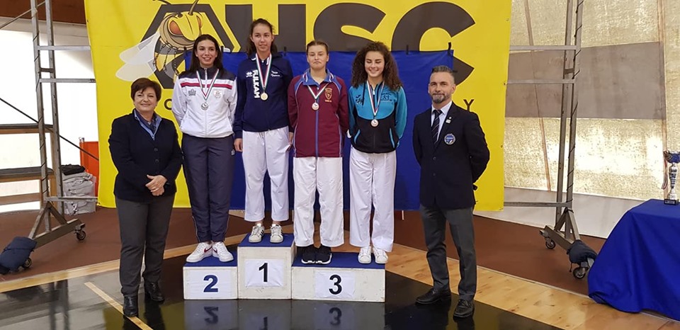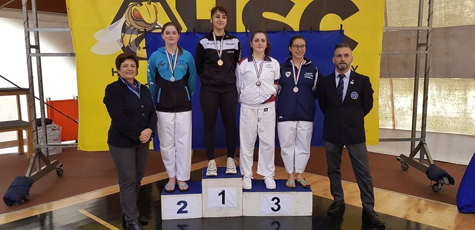 -medaglia di bronzo per Merolle Nadia che vince gli incontri e conquista il terzo posto pagando la confusione tecnica dell’avversaria con la quale perde l’accesso alla finale.