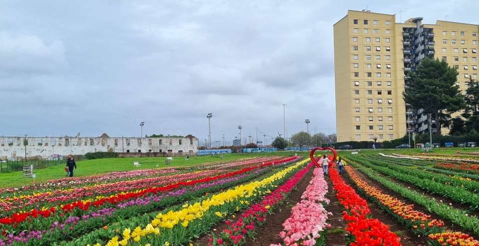 Sono ancora i fratelli Votadoro (la cui azienda si occupa dal 1979 di coltivazione, produzione e vendita all’ingrosso di fiori) i deus ex machina delle file ordinate e vivaci di tulipani a cui camminare accanto. Perché il segreto di quest’iniziativa resta la semplicità: portare gratificazione dove se ne ha più bisogno; dove la presenza del verde, man mano, va diradando, schiacciata dal cemento.