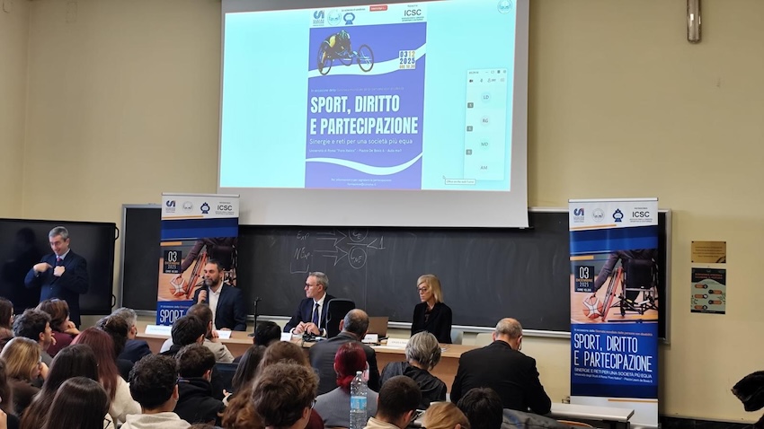 Massimo Sacchetti, rettore dell’Università di Roma “Foro Italico”: «È un grande onore per noi essere qui nella Giornata Internazionale delle persone con disabilità, per ribadire l’importanza dello sport e soprattutto fare rete. Fondamentale unire per forze per garantire diritto di partecipazione e dare pari opportunità a ogni individuo. In questo senso la giornata di oggi rappresenta un momento di confronto importante tra attori di varia natura, istituzionale e universitaria, con l’obiettivo di sensibilizzare le nuove generazioni su un tema così delicato».