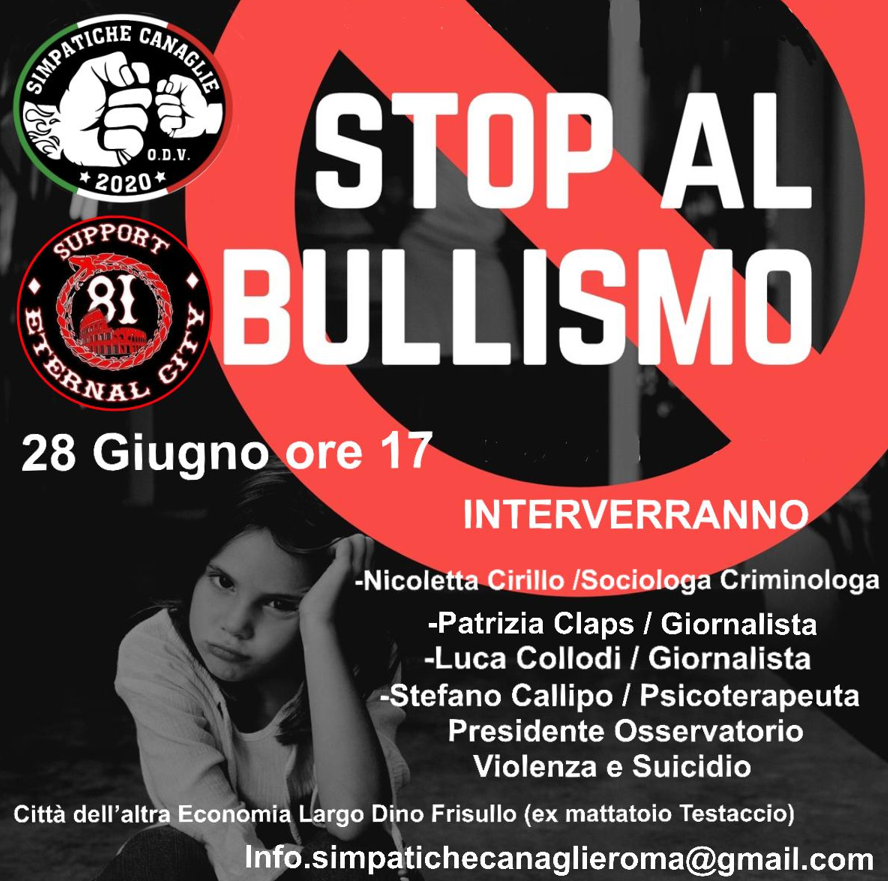 TUTTI IN MOTO CONTRO IL BULLISMO è il titolo del progetto messo a punto dall’ O.d.V. Simpatiche Canaglie Roma presentato sabato 28 giugno alle 17 presso la Città dell’Altra Economia (L.go Dino Frisullo Testaccio) a Roma, nell’ambito dell’evento “STOP AL BULLISMO”.