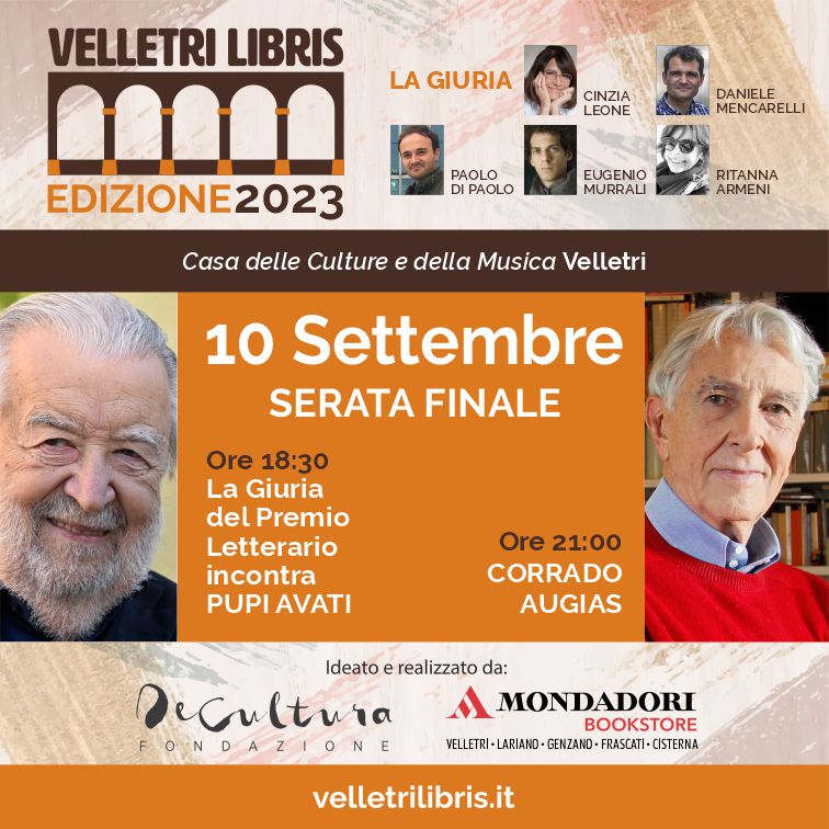 Start alle 18.30, con un incontro speciale tra la giuria del Premio letterario “Velletri Libris” – composta da Cinzia Leone, Ritanna Armeni, Daniele Mencarelli, Paolo Di Paolo ed Eugenio Murrali – e il regista e scrittore Pupi Avati. Quest’ultimo, il cui libro su Dante ha avuto un’eco straordinaria tra i giovani e non solo, sarà anche insignito di un premio alla carriera letteraria.