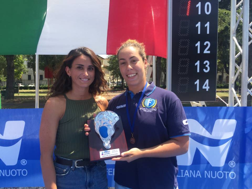Spedizione a Firenze per l’Under 19 dell’F&D H2O Velletri. La squadra allenata da mister Di Zazzo si è qualificata alle final eight e in terra toscana si è giocata lo scudetto insieme alle più titolate compagini d’Italia. Una rete subita a sette secondi dalla fine della gara valevole per i quarti di finale è valsa l’eliminazione per le veliterne, poi in vasca per le restanti gare volte a definire il posizionamento finale. Alla fine dei conti l’F&D H2O è quinta in Italia, risultato lusinghiero ma allo stesso tempo stretto al club del presidente Perillo, partito con buone ambizioni e capace comunque di giocarsela alla pari con le altre squadre. Nella prima giornata l’F&D H2O ha perso contro il Plebiscito Padova (11-18). Nella seconda gara è arrivato un ko contro Florentia (5-10), mentre nel terzo match è arrivata una vittoria ai danni del Varese (7-6). Si decide tutto ai quarti, dove le gare sono a senso unico (Florentia batte Plebiscito 6-1, Ekipe batte Milano 15-0, Bogliasco supera Varese 12-1) tranne quella tra Trieste e F&D H2O, terminata 6-5 in favore delle avversarie con la rete della vittoria arrivata a sette secondi dalla sirena finale, quando tutti avevano già la testa ai tiri di rigore. Nelle semifinali per il quinto/ottavo posto, la squadra di Di Zazzo ha superato Milano 15-1 e poi Plebiscito Padova 10-7 chiudendo quindi quinta. Sugli scudi l’atleta Francesca Colletta, già titolare in questa stagione di A1, con ben venti reti che significano il titolo di capocannoniere della final eight. Un’esperienza positiva ma non gratificante al 100%, come dichiarato dal presidente Francesco Perillo: “Sicuramente la palla è rotonda, gli arbitraggi hanno il loro peso e il quinto posto non è negativo, però sono convinto che questa squadra potesse senza presunzione ambire ad un posto tra le prime quattro. Sarà per la prossima e speriamo bene per l’Under15 che ad agosto giocherà le sue finali scudetto”.