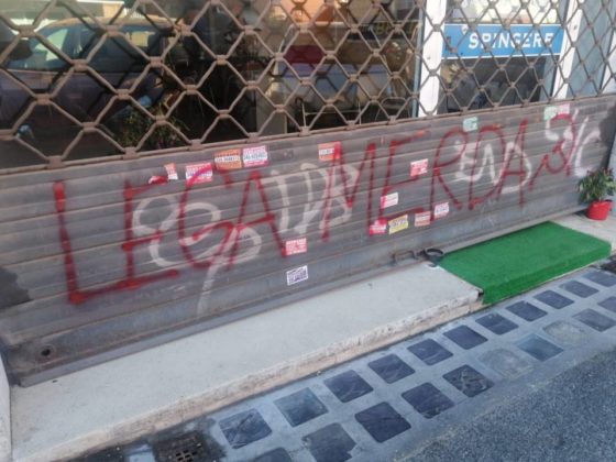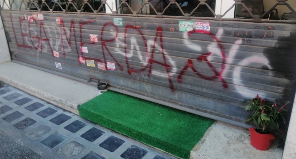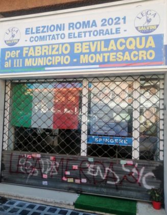 “Stamattina abbiamo trovato la sede del comitato elettorale della Lega nel III Municipio a Via Valle Scrivia vandalizzata e danneggiata.