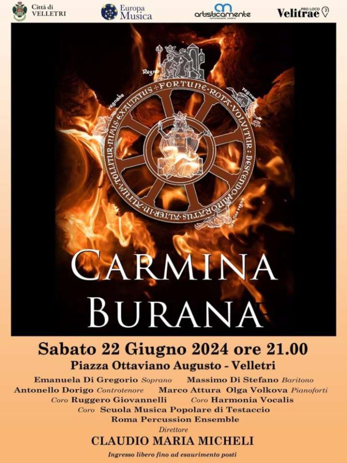 Sabato 22 giugno alle 21:00, presso piazzale Cesare Ottaviano Augusto, si terrà il concerto “Carmina Burana”