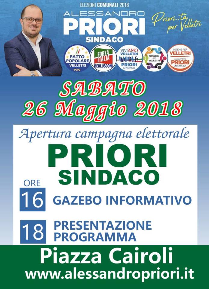 Le notizie ed il programma elettorale intitolato “Priorità per Velletri” sono consultabili sul sito www.alessandropriori.it.