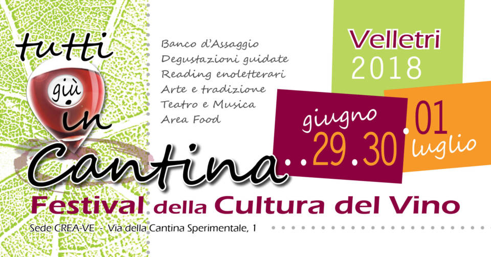 “Tutti giù in Cantina” torna per il quarto anno a Velletri, nella sede CREA di via Cantina Sperimentale, ma anticipa da settembre (periodo delle prime 3 edizioni) al fine settimana 29-30 giugno e 1 luglio 2018. Non è però questa l’unica novità del Festival della Cultura del Vino che vede insieme Crea e Associazione “Idee in Fermento” nell’organizzazione, ci sarà infatti un innalzamento del livello complessivo dell’evento con più appuntamenti e ancora più qualità nell’offerta. Le cantine aderenti al Banco d’Assaggio saranno 100, per oltre 200 vini in degustazione dall’Italia e dal Mondo tramite il consueto calice con tracollina; saranno 3 le Degustatio Magistralis con un’apertura di assoluta qualità grazie alla collaborazione della Verband Deutscher Prädikatsweingüter (l’associazione che raggruppa i migliori vini tedeschi), della “Casa di Goethe Museum” e dell’Ambasciata della Repubblica Federale di Germania a Roma, che ha dato il suo Patrocinio all’evento. La Germania, dunque, è il Paese straniero ospite d’onore dell’edizione 2018 (nel 2017, lo ricordiamo, fu la Grecia) mentre hanno confermato il Patrocinio la Regione Lazio e il Comune di Velletri, così come garantiranno ancora il loro supporto Fisar Delegazione Roma e Castelli Romani, Assoenologi Lazio-Umbria e l’Associazione Manacubba, mentre la Banca Popolare del Lazio ha sostenuto l’evento come main sponsor.