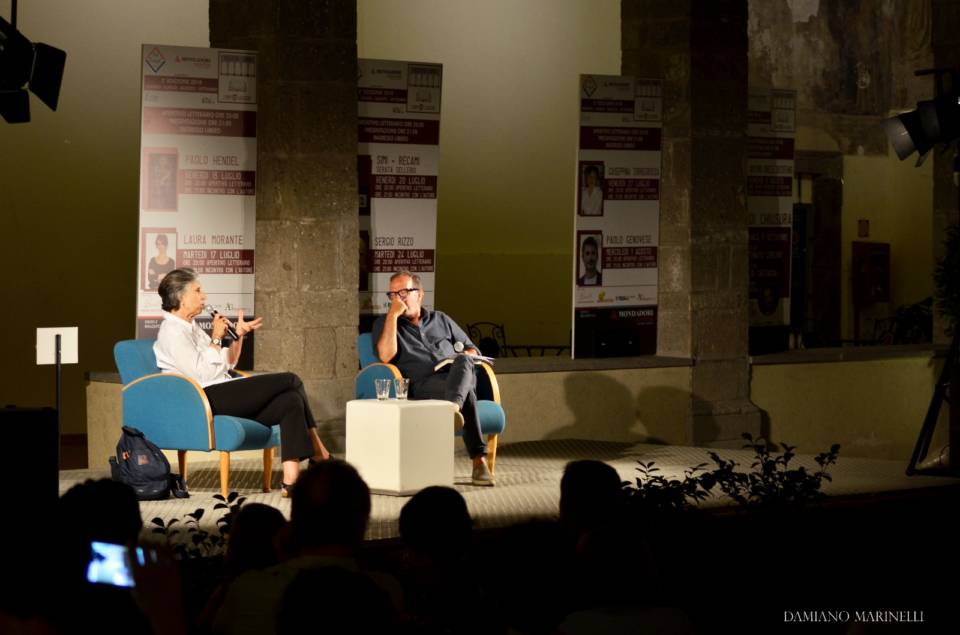 Nella serata dell’eclissi di luna, la scrittrice Giuseppina Torregrossa con la sua grande solarità ha letteralmente illuminato la Casa delle Culture e della Musica per il venerdì sera di “Velletri Libris”. Ospite della rassegna ideata e realizzata dalla Mondadori Bookstore Velletri, l’autrice siciliana ha presentato il suo ultimo romanzo, Il basilico di Palazzo Galletti (edito da Mondadori), conquistando il numeroso pubblico accorso nel Chiostro. La Torregrossa ha esordito lodando l’organizzazione veliterna, “densa e piena di effetti speciali”, per poi partire dal titolo per ragionare della sua opera. “Il basilico per noi donne del Sud è qualcosa che si può usare ovunque. Il libro vede la protagonista usarne in grandi quantità, ma non è solo un ingrediente, bensì un indizio poiché queste piante verdi che ornano i balconi sono utili anche alle indagini del giallo”. Il romanzo della Torregrossa, infatti, è un misterioso caso di cronaca che viene affidato ad una giovane commissaria, alle prese con una serie di fitte contraddizioni da svelare. Scenario particolare della narrazione è Palazzo Galletti, un edificio realmente presente a Palermo, storico e in stile neogotico, oggi utilizzato come sede di uffici ma un tempo tempio della malavita e dei senzatetto. Il difficile recupero, “a macchia di leopardo”, per l’usura e per il vandalismo, hanno consegnato a questo Palazzo un alone di fascino non indifferente. La vera protagonista del libro, però, è la città di Palermo stessa: “Non è uno scenario” – ha specificato l’autrice – “ma occupa la scena del mio immaginario. Non riesco a farne a meno, è una città in cui si muovono le anime dei personaggi che la vivono e la interpretano”. Sullo sfondo del plot c’è il Ferragosto, giorno in cui avviene la morte di Giulia Arcuri. Una festività vissuta, nel profondo Sud, con uno spirito dionisiaco che abbina la grossolanità alla spiritualità. Le liti con Santa Rosalia per la mancanza dell’acqua, il pentimento e le richieste di scuse porte alla santa stessa: questi costumi non sono esagerazioni o fantasie, ma parte integrante della quotidianità siciliana. La commissaria, di fronte alla morte di una ragazza, tira fuori oltre alle sue competenze investigative anche il lato umano: “Le donne sono spesso infelici” – ha detto la Torregrossa – “e come diceva la Ginzburg attingono all’enorme pozzo di infelicità. La mia protagonista non fa eccezione: ha una vita privata non appagante, un fidanzato burbero di cui non riesce a fare a meno, sente il peso di una società che al Sud è strutturata per la famiglia. Lei non è tagliata per fare dei figli, e non trova la sua strada, pur cercando di adattarsi. Il delitto è uno specchio anche per sé, poiché nelle indagini trova degli spunti per la sua vita”. Sui punti in comune tra la poliziotta e la vittima, la Torregrossa ha svelato la presenza di una sorta di proiezione dell’investigatrice sull’assassinata. Una ragazza, Giulia Arcuri, bella e dannata: colpita da giovane da una malattia genetica rara, è frenata da una intolleranza alla luce che la costringe a stare rinchiusa nel suo appartamento e indossare lunghi abiti bianchi. Nonostante ciò ha un candore e una bellezza, con i suoi capelli rosso fuoco, non indifferente. Un personaggio femminile molto analizzato anche psicologicamente, che fa da contraltare ai protagonisti maschili: un po’ bizzarri, talvolta grotteschi come Sasà, tratti da conoscenza reali della scrittrice. Particolarità de Il basilico di Palazzo Galletti è l’uso del dialetto, tanto da rendere necessario un glossario a fine libro: il siciliano “si usa tra il popolo” – ha detto la Torregrossa, in una digressione letteraria – “e lo abbiamo perso. Avevamo una letteratura dialettale nutrita fino a Pirandello, la nostra è una vera e propria lingua. Lo spartiacque è stato proprio Pirandello, che nell’invitare a distaccarsi dal dialetto per evitare una letteratura regionalizzata e confinata ha inibito un’intera generazione”. Tale condizione è poi mutata con Andrea Camilleri: “Con Camilleri si è tornato a un siciliano che però è talvolta inventato, lo definirei un ‘camillerese’. Ha avuto il merito, da Maestro quale è, di portare il dialetto fuori dall’isola e nel mondo. Io amo molto la lingua palermitana, lo uso quotidianamente, e rimane per me l’espressione dell’affetto e dell’emotività. Certe cose, come le ‘ninne nanne’, non puoi non cantarle in dialetto”. Senza andare troppo in profondità nella trama del romanzo, che in quanto giallo presuppone determinate omissioni per lasciare al lettore il gusto della scoperta, la Torregrossa ha risposto ad alcune domande riguardanti la propria esperienza, umana, professionale e artistica. Con ironia e livello, la scrittrice si è soffermata sul tema migranti: “Per me l’errore di fondo è parlare di integrare il diverso. Dobbiamo accoglierlo, è come quando prendiamo marito, non si può integrare o cambiare, l’integrazione vera parte dall’accoglienza”. E sulle migrazioni ha ricordato la sua esperienza personale: “Non esagero se dico che quando a 14 anni mi dovetti trasferire a Roma, mi sentivo una terrona deportata al Nord. Roma era Nord, il primo trauma fu il raccordo. Mi colpì molto poi il verde che adornava la capitale, così diversa da Palermo che era molto più cementificata. Mi sembrava di essere a Londra. Roma, alla fine degli anni Sessanta, era una città molto chiusa, io parlavo un italiano corretto ma l’accento era forte e mi prendevano in giro, tant’è che smisi di parlare e la prima pagella fu una tragedia”. Sui suoi primi approcci alla scrittura, la Torregrossa ha raccontato di avere questa passione dall’età di cinque anni. Qualcuno si è accorto di lei, portandola al successo, ma nel frattempo la carriera medica l’ha impegnata come ginecologa. Che differenze ci sono tra questi due mondi, quello ospe