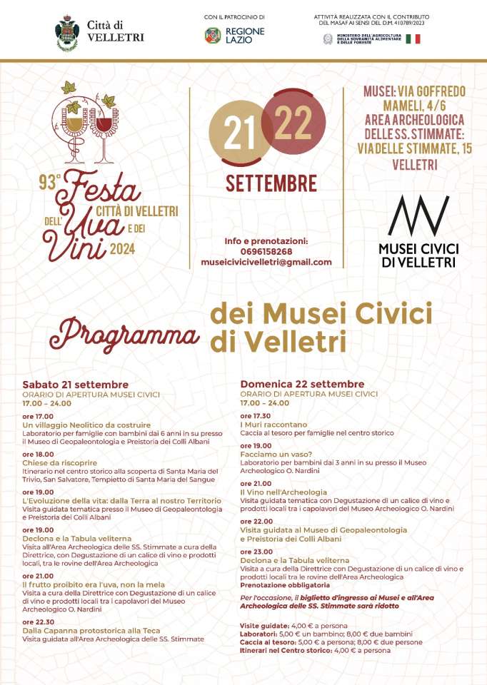18 Settembre 2024 Musei Civici di Velletri 93° Festa dell’Uva e dei Vini di Velletri e del territorio