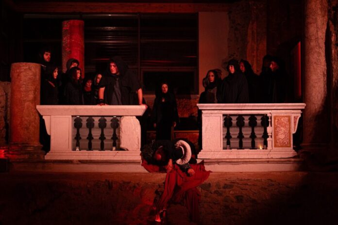 Nella suggestiva cornice dell’Area Archeologica delle Stimmate, luogo dove le rovine raccontano storie millenarie che richiamano la stratigrafia di una città, ha preso forma “Un’Orestea”, da Eschilo, ambizioso e affascinante progetto teatrale che ha intrecciato classicità, simbolismo e formazione attoriale. Il lavoro, affidato alla sapiente regia condivisa di Giacomo Zito e Luigi Pisani, si è rivelato un’esplorazione intensa e rispettosa del mito fondativo della tragedia occidentale. Due le repliche dello spettacolo – entrambe con il tutto esaurito – realizzato con il contributo economico del Comune di Velletri e in collaborazione con i Musei Civici di Velletri, diretti da Raffaella Silvestri, e la FondArC, andate in scena venerdì 21 e sabato 22 novembre alle ore 21 nello splendido complesso archeologico veliterno.