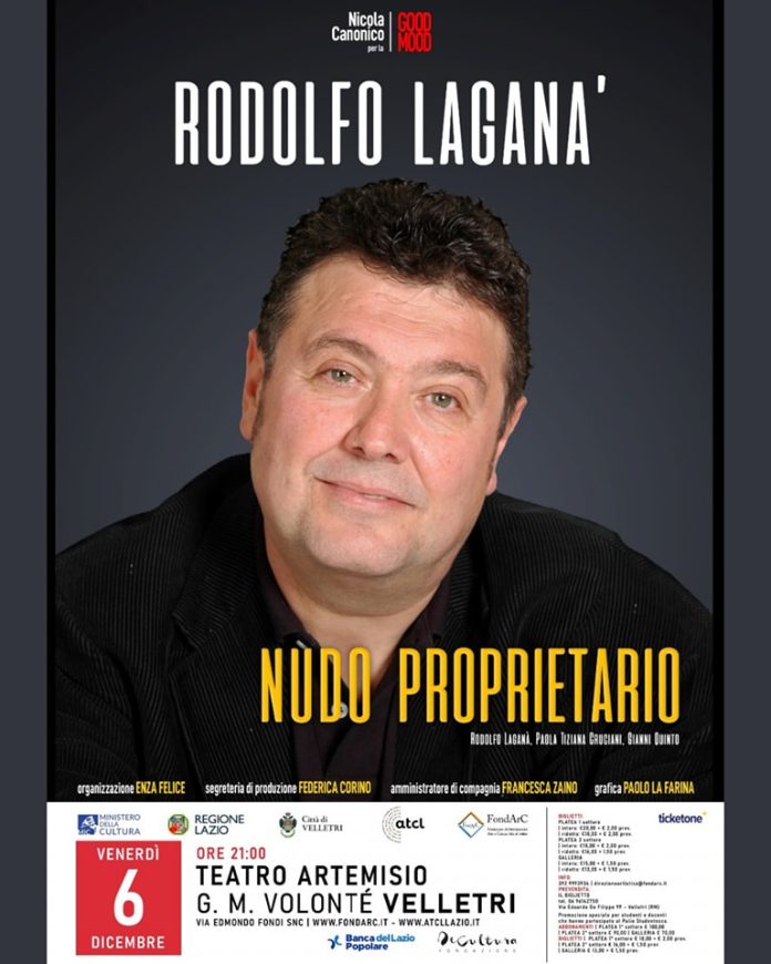 Il prossimo spettacolo è in programma per venerdì 6 dicembre, alle ore 21, con un grande interprete del teatro italiano come Rodolfo Laganà. “Nudo proprietario” è uno spettacolo di Rodolfo Laganà, Paola Tiziana Cruciani, Gianni Quinto, per una produzione GoodMood. Il testo ci svela un Rodolfo Laganà mai visto prima: titolo azzeccato per uno spettacolo che parla della libertà di mettersi “a nudo”, un desiderio che viene fuori con l’età ma non solo. Tra risate e coinvolgimento interattivo, tra canzoni dal vivo e racconti inediti, un artista ci rivela come tutto è cominciato. Ma non è finita qui: un uomo che si mostra, senza più