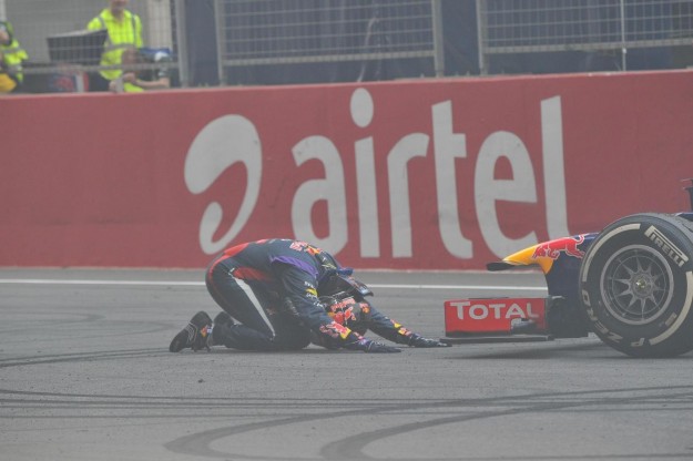 Vettel, come da pronostici, si prende gara e titolo mondiale in India. La gara di domenica 27 ottobre dimostra una volta di più le capacità del pilota tedesco che, dopo la pole, di sabato, si permette il lusso di cambiare strategia di gara, sostituire i pneumatici e di risalire dal ventesimo posto al secondo fino al pit-stop del compagno di squadra Webber. Dopo un assolo, reso ancora più facile dalla rottura sulla Red Bull dell’australiano che ha aperto le porte ad una vittoria comoda per Vettel. Dietro dopo la buona partenza Massa deve arrendersi alla rimonta di Grosjean che con un solo pit-stop arriva terzo, preceduto da Rosberg a testimonianza dell’ottimo momento della Mercedes, da domenica seconda team nel costruttori. La Ferrari al di là della partenza e dei primi giri di Massa, ha poco da sorridere: la toccata tra Webber ed Alonso costringe lo spagnolo ad una gara sofferta e senza punti. Il brasiliano manca il podio e precede un ottimo Perez quinto con la rediviva McLaren. Dietro deluso Kimi Raikkonen, che fino a poco dal termine viaggiava in zona podio, lo precede Hamilton che subisce una lezione da Rosberg. La Force India a punti con le due monoposto conferma le sue qualità, mentre la “ferrarina” di un bravo Ricciardo va a punti precedendo Alonso.