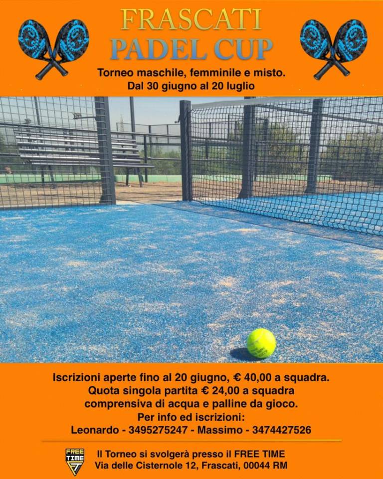 Via alla prima edizione della “Frascati Padel Cup”: dal 30 giugno al 20 luglio al Free Time