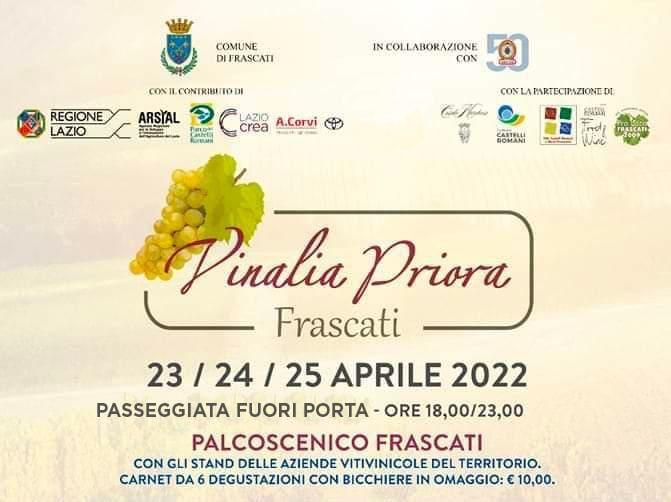 L’Amministrazione comunale di Frascati, in collaborazione con il Consorzio di Tutela Denominazioni Vini Frascati; con il contributo di Regione Lazio – Arsial, Parco regionale dei Castelli Romani, Lazio Crea, TIM, Toyota Corbi; e con la partecipazione di Azienda agricola Casale Marchese, Gal Castelli Romani e Monti Prenestini, Sistema Castelli Romani, Basic System Frascati, Castelli Romani Food and Wine, Associazione Pro Loco Frascati, presenta Vinalia Priora, evento di degustazione delle nuove annate del Frascati Superiore Docg. Dal 23 al 25 aprile in Passeggiata Fuoriporta a Frascati, undici eleganti stand accoglieranno le aziende vitivinicole del territorio, per un percorso espositivo e degustativo unico, incorniciato da una magnifica vista su Roma. L’accesso alle degustazioni sarà regolato da un carnet a prezzo fisso spendibile in ogni stand, che darà diritto ad un massimo di 6 assaggi e ad un calice in omaggio. L’apertura al pubblico è prevista dalle ore 18 alle ore 23. Per info e prenotazioni: info@consorziofrascati.wine; 333 4497204.