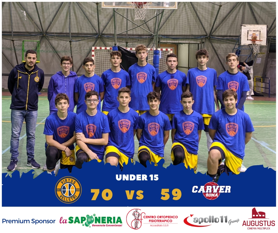 Bella vittoria per i ragazzi dell’Under 15 di Coach Libutti che battono i parietà della Carver per 70 a 59. Partita che inizia bene per i gialloblu che giocano un ottimo primo quarto andando sul +14. Vantaggio costruito soprattutto con un’attenta difesa e attacchi corali. Nel secondo quarto brutto black out. La Carver diventa più aggressiva e la Virtus perde tantissimi palloni. I romani ci credono e arrivano fino al -1 con cui si chiude il secondo quarto di gioco. Dopo la sosta la squadra sembra ritrovare un buon gioco. La partita si fa equilibrata e bella con entrambe le squadre a lottare su ogni pallone. Virtus che allunga nei minuti finali trovando la prima vittoria stagionale toccando il +11 sulla sirena. Vittoria fondamentale per il morale dei ragazzi in un campionato davvero equilibrato e di livello.