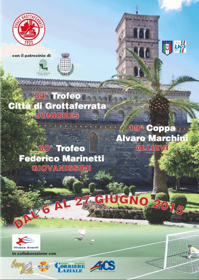“Torna il tradizionale e atteso appuntamento del grande calcio giovanile d’estate a Grottaferrata. La Società Vivace Eventi di Grottaferrata e la Vivace Grottaferrata Calcio, con il Patrocinio del Comune di Grottaferrata e della XI Comunità Montana Castelli Romani e Prenestini, organizzano anche quest’anno la manifestazione denominata “Calcio a Grottaferrata” presso il campo di gioco “Comunale” di via degli Ulivi. Dal 6 al 27 giugnoprossimi andranno dunque in scena il 34° Trofeo “Città di Grottaferrata” riservato alla categoria Juniores, la 19ª Coppa “Alvaro Marchini” per la categoria Allievi e la 30ª Coppa “Federico Marinetti” per la categoria Giovanissimi, sotto l’egida della F.I.G.C.