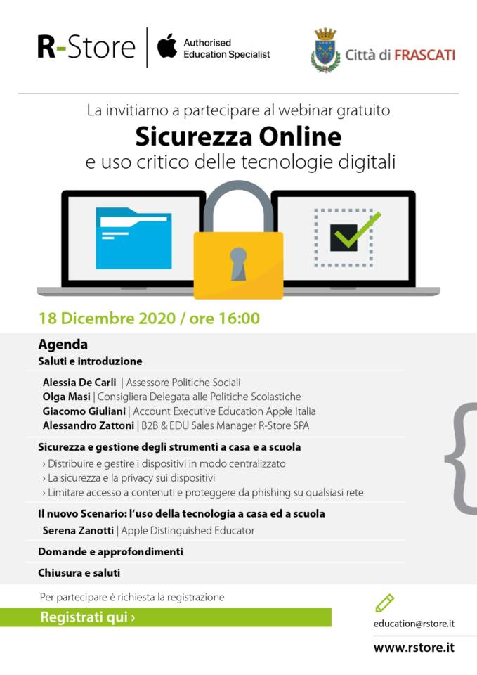 Venerdì 18 dicembre 2020 alle ore 16.00 si terrà la seconda edizione del webinar gratuito dedicato alla Sicurezza Online e uso critico delle tecnologie digitali, promosso da R-Store. Il webinar avrà una durata di 45 minuti e sarà finalizzato a informare e sensibilizzare studenti, famiglie e personale docente sull’uso efficace delle nuove tecnologie e metodologie per la formazione integrata e a distanza. Si parlerà di come tutelare la privacy dei minori e delle persone che usano le piattaforme per la didattica digitale a casa e a scuola, offrendo suggerimenti concreti, utili ed efficaci per agire in modo sicuro.