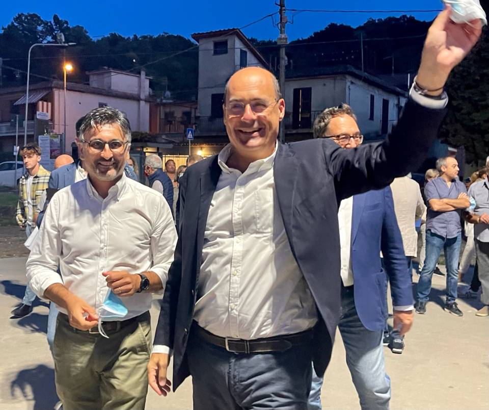 Applausi e bagno di folla rigorosamente distanziato e in mascherina per il presidente della Regione Lazio, Nicola Zingaretti che ha concluso a Marino presso l’area delle Cave di Peperino la campagna elettorale del “centrosinistra allargato” per Gianfranco Venanzoni sindaco.