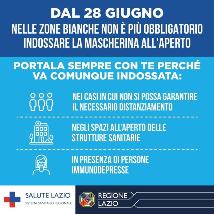 Zone bianche, mascherina all’aperto non più obbligatoria dal 28 Giugno